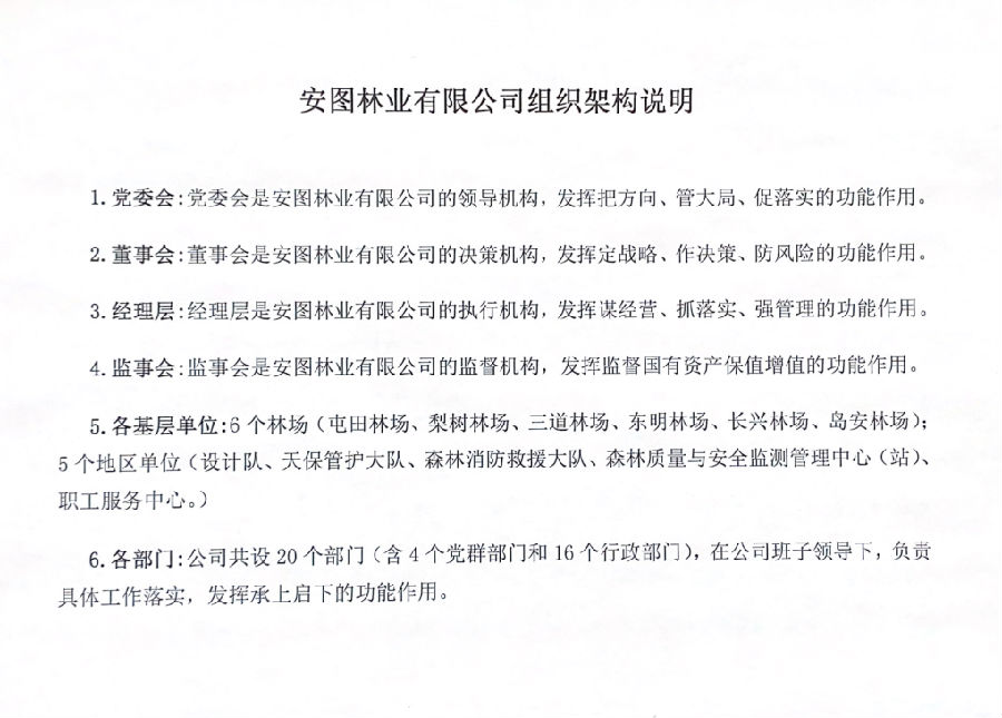 安圖林業(yè)有限公司 (機(jī)關(guān))組織架構(gòu)