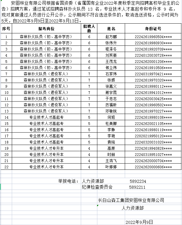 安圖林業(yè)有限公司 2022年度秋季定向招聘高校畢業(yè)生的公告